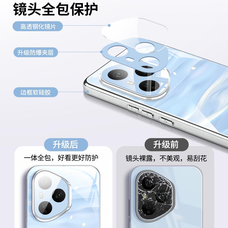 适用荣耀400pro手机保护壳荣耀400新款镜面玻璃honor海风蓝专用外壳镜头全包防摔流沙粉高级感男女保护套系列