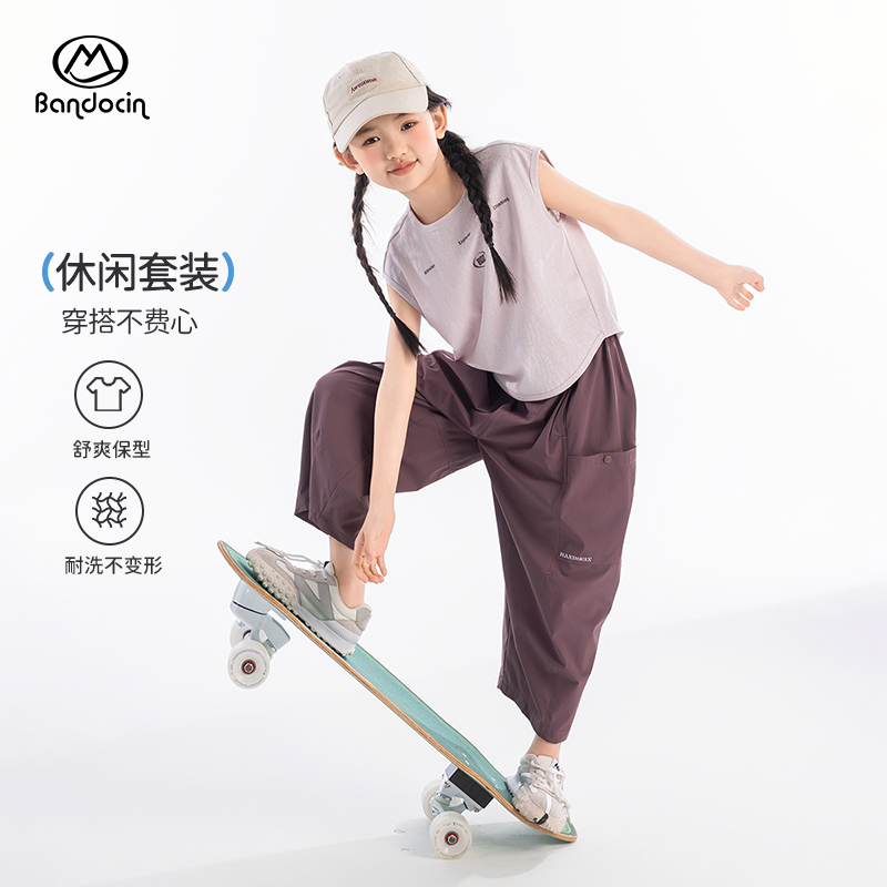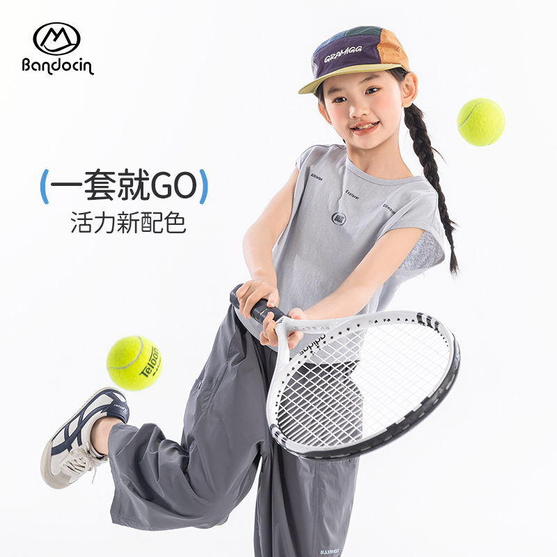 半度闲女童运动背心套装夏装洋气薄款2025新款儿童夏季上衣两件套