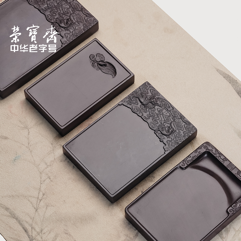 荣宝斋端砚斧柯东砚台带锦盒套装文房四宝精品礼品书法国画墨池端砚原石研磨墨锭