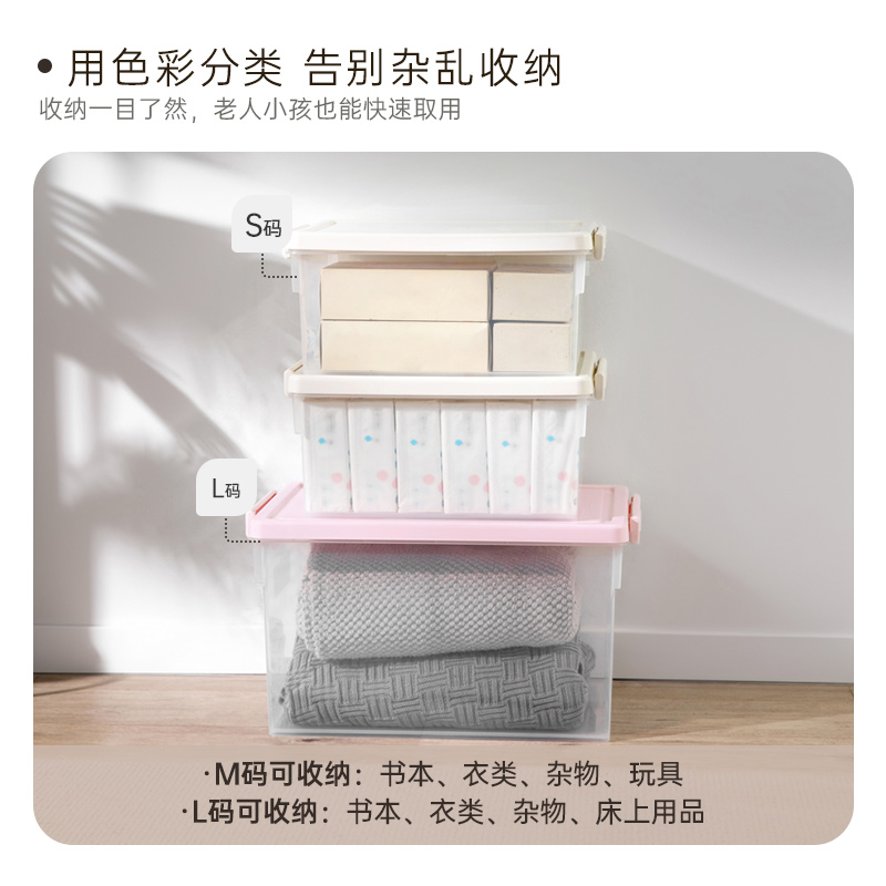 Tenma天马卡式透明家用收纳箱衣柜衣物整理箱玩具医药储物盒调色