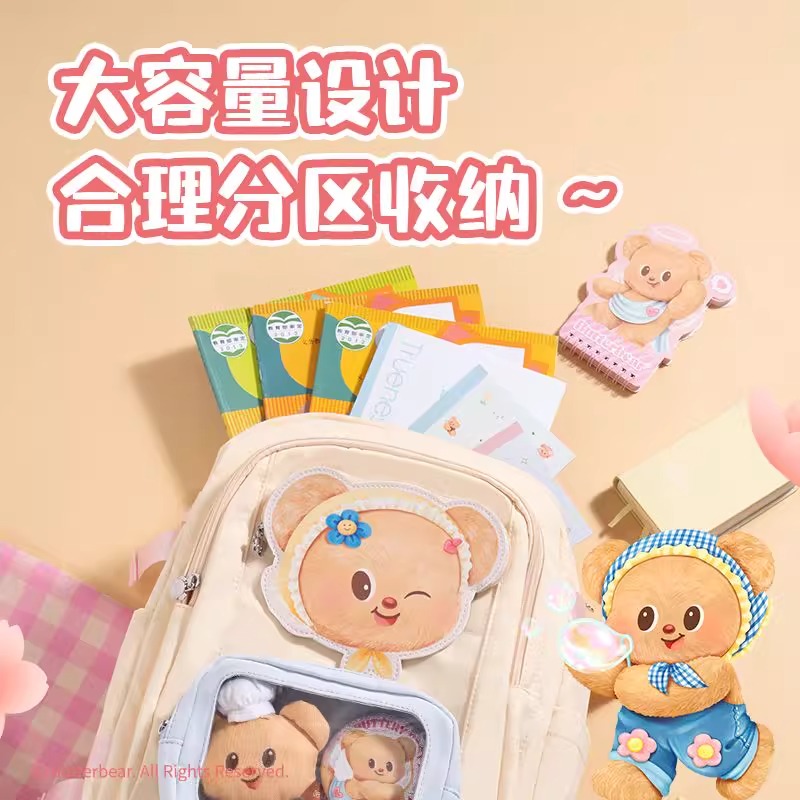 得力黄油小熊联名书包多功能背包小学生书包卡通可爱双肩包大容量高颜值双肩背包男女孩轻便多口袋