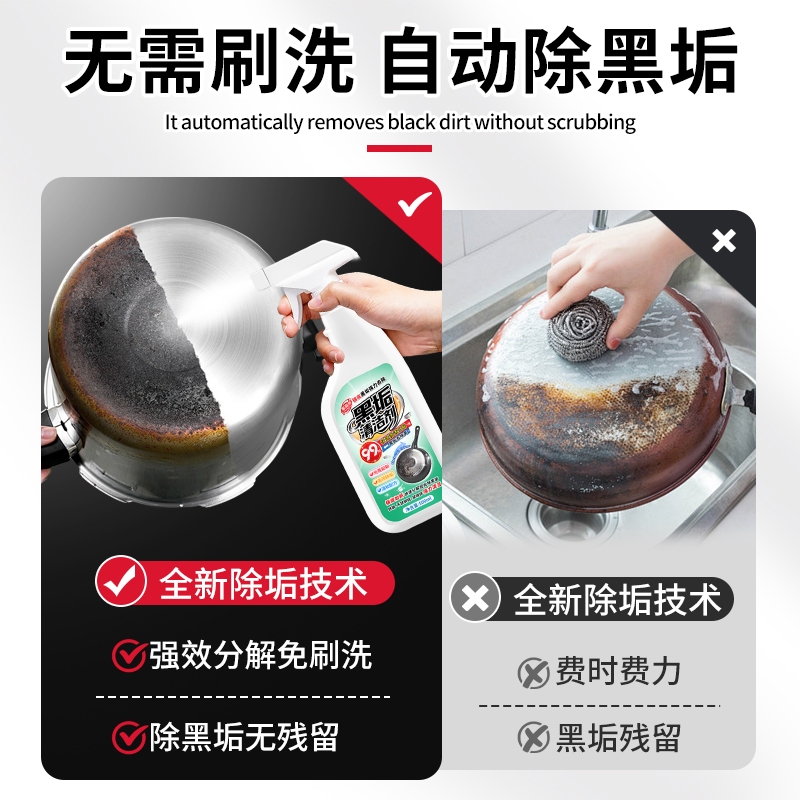 锅底黑垢清洁剂洗油污厨房重油强力去污去洗不锈钢铁锅锅具