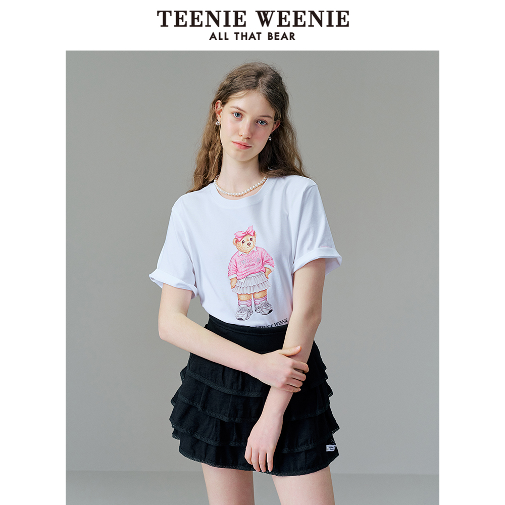 TeenieWeenie小熊女装圆领T恤2025秋季新款甜酷萌趣印花短袖上衣