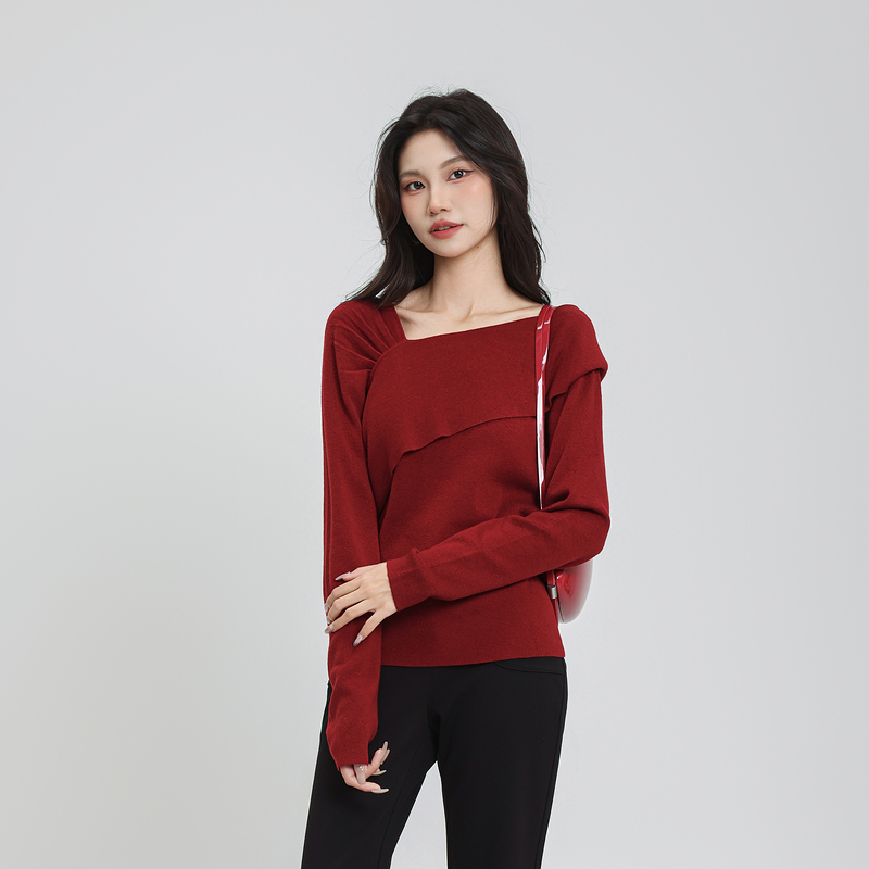 记忆的起点套头毛衣2025冬季新款百搭斜领针织打底上衣69GD50003D