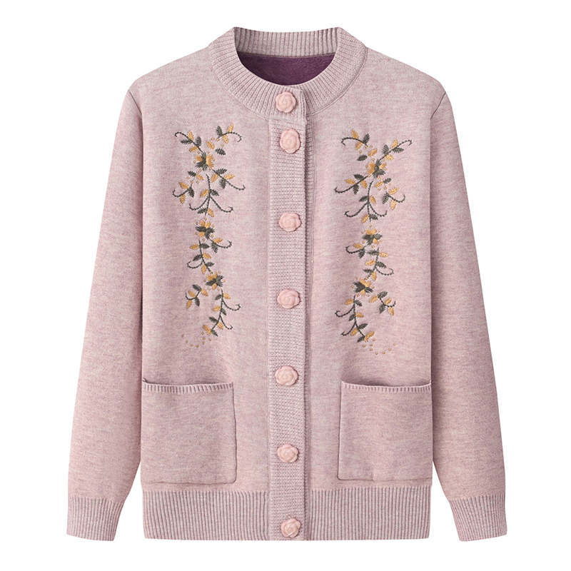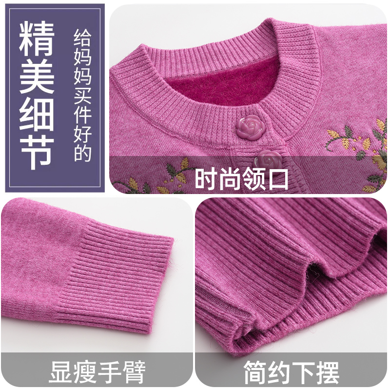 中老年人毛衣外套中年妈妈春秋保暖衣女奶奶装秋冬加绒上衣服开衫