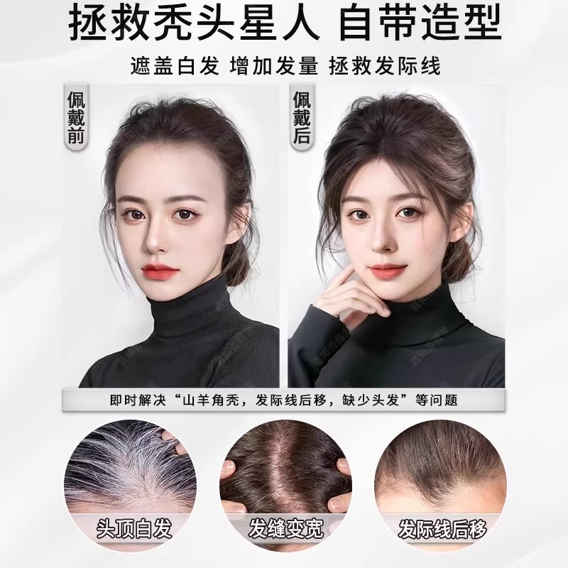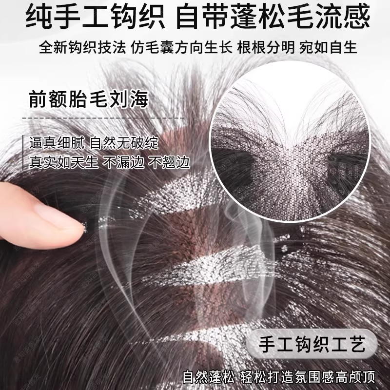 胎毛刘海假发女片头顶真发无痕隐形增发量蓬松高颅顶发际线假发贴