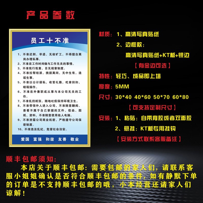 热销公司管理规章制度牌企业办公室员工守则文化标语工作原则十不