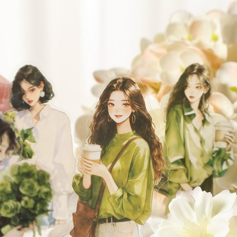 ZABC贴纸花影依人系列精致女生人物主题手账DIY素材装饰贴30张6款
