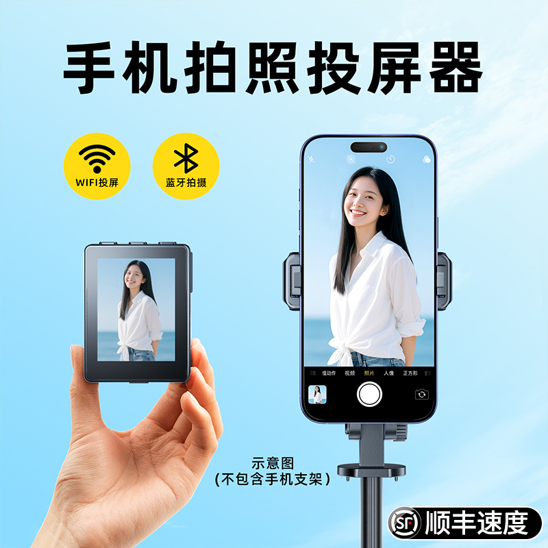 手机投屏器2025新款后置摄像头自拍显示屏网红自拍神器远程控制蓝牙遥控拍照一个人拍摄辅助三脚支架拍拍宝