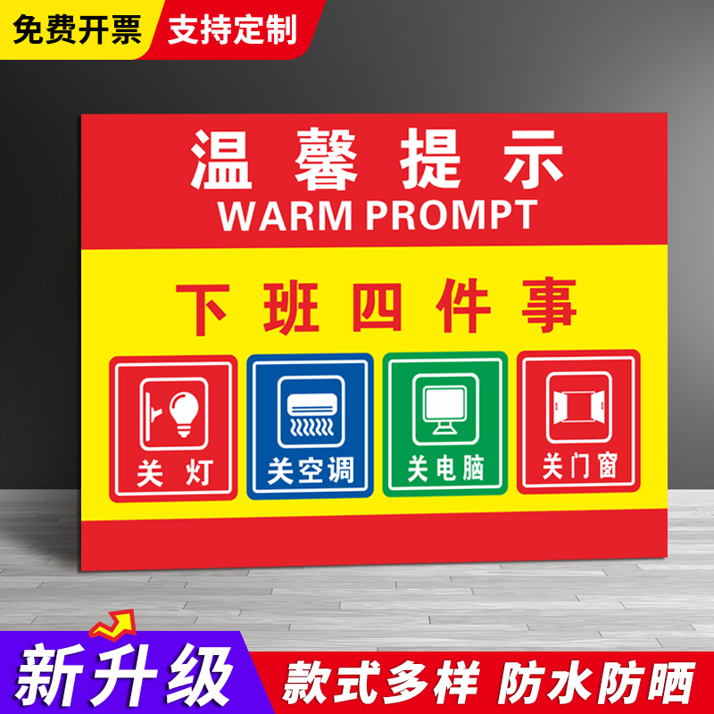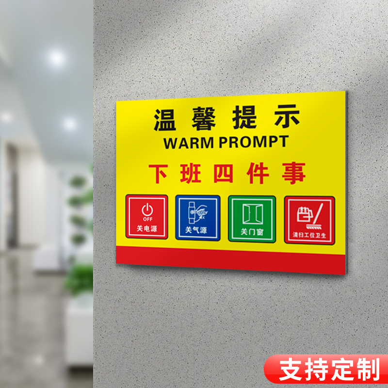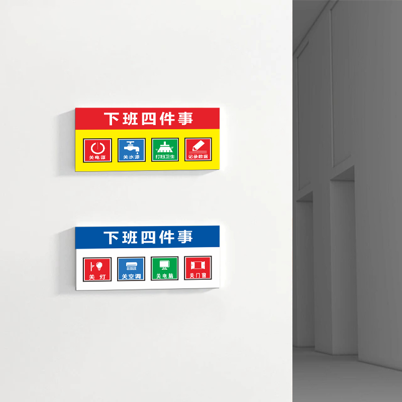 下班四件事最后一位离开关闭电源电脑空调电灯标识定制个性创意办公室请随手关门指示标志温馨提示牌墙贴门牌