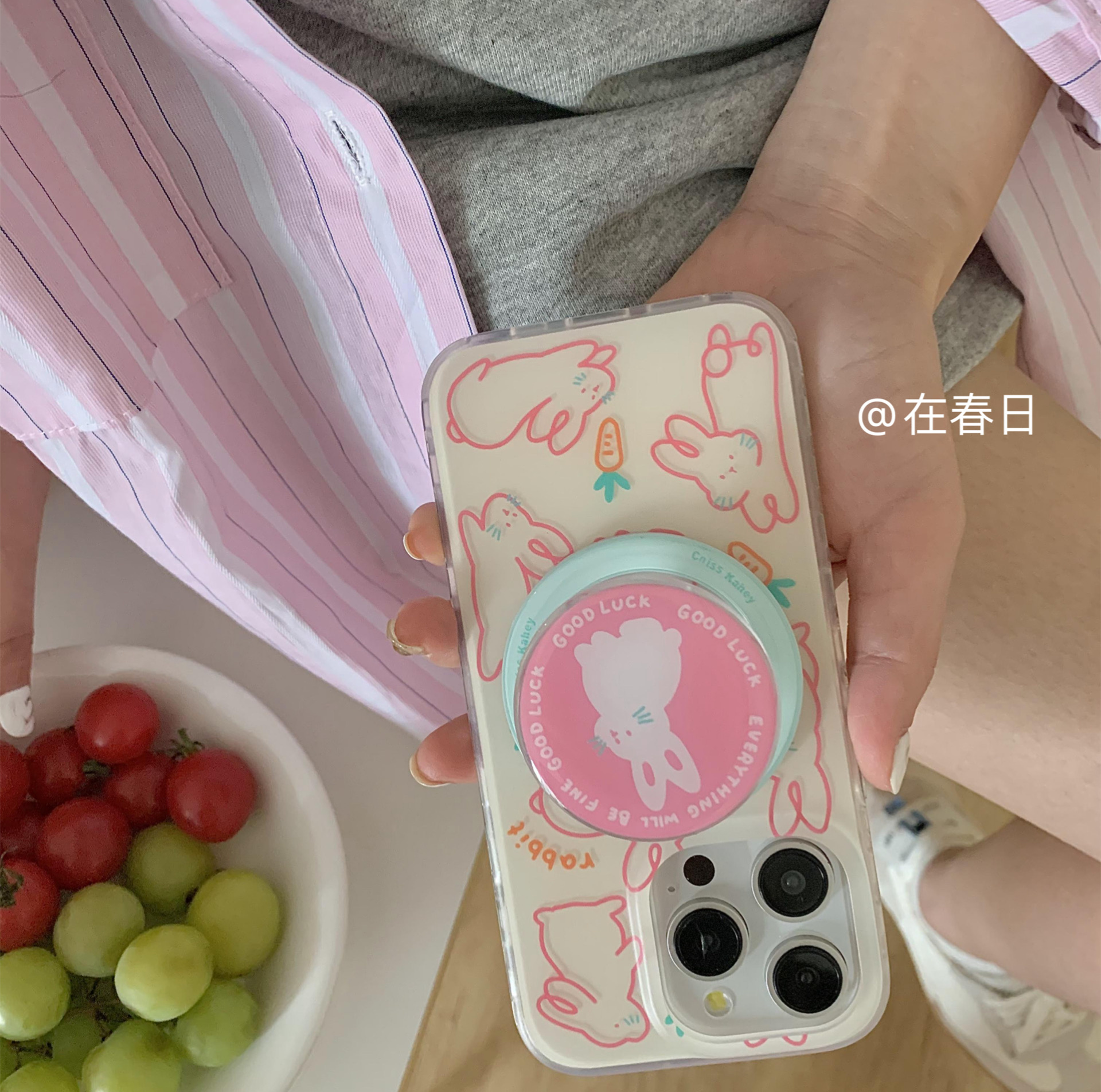 在春日小众春天粉色兔子磁吸双层印花手机壳适用15promax/14新款iPhone16pro可爱15手机壳14promax/13
