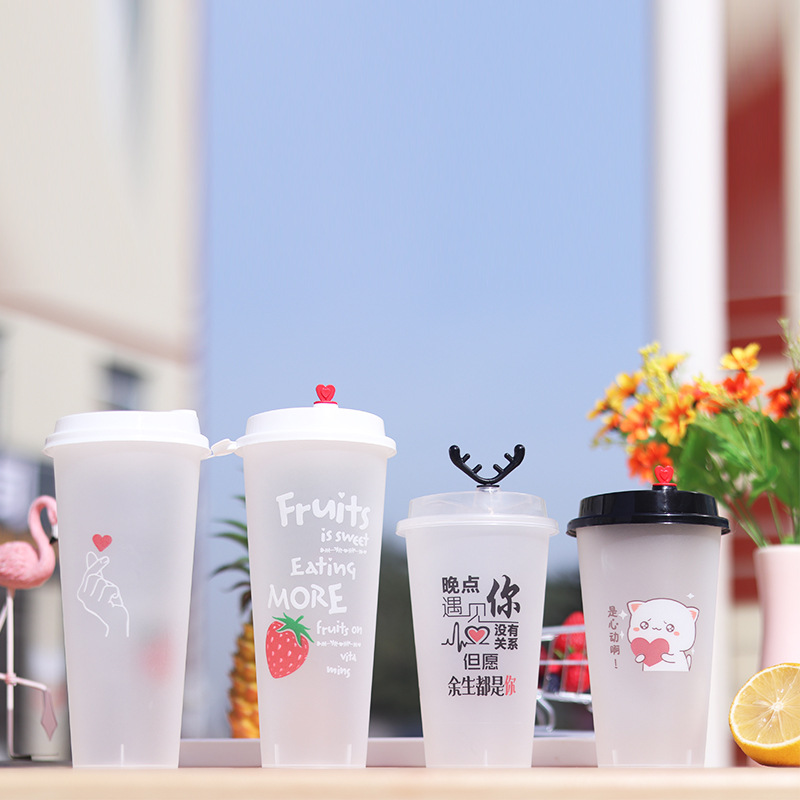 90口径一次性奶茶杯注塑磨砂塑料杯加厚果汁饮料冷饮杯可印LOGO