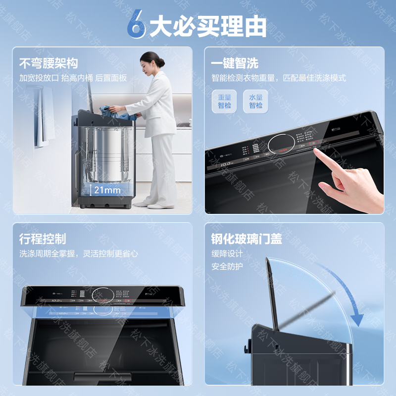 松下10公斤不弯腰波轮家用全自动洗衣机以旧换新补贴XQB100-U125