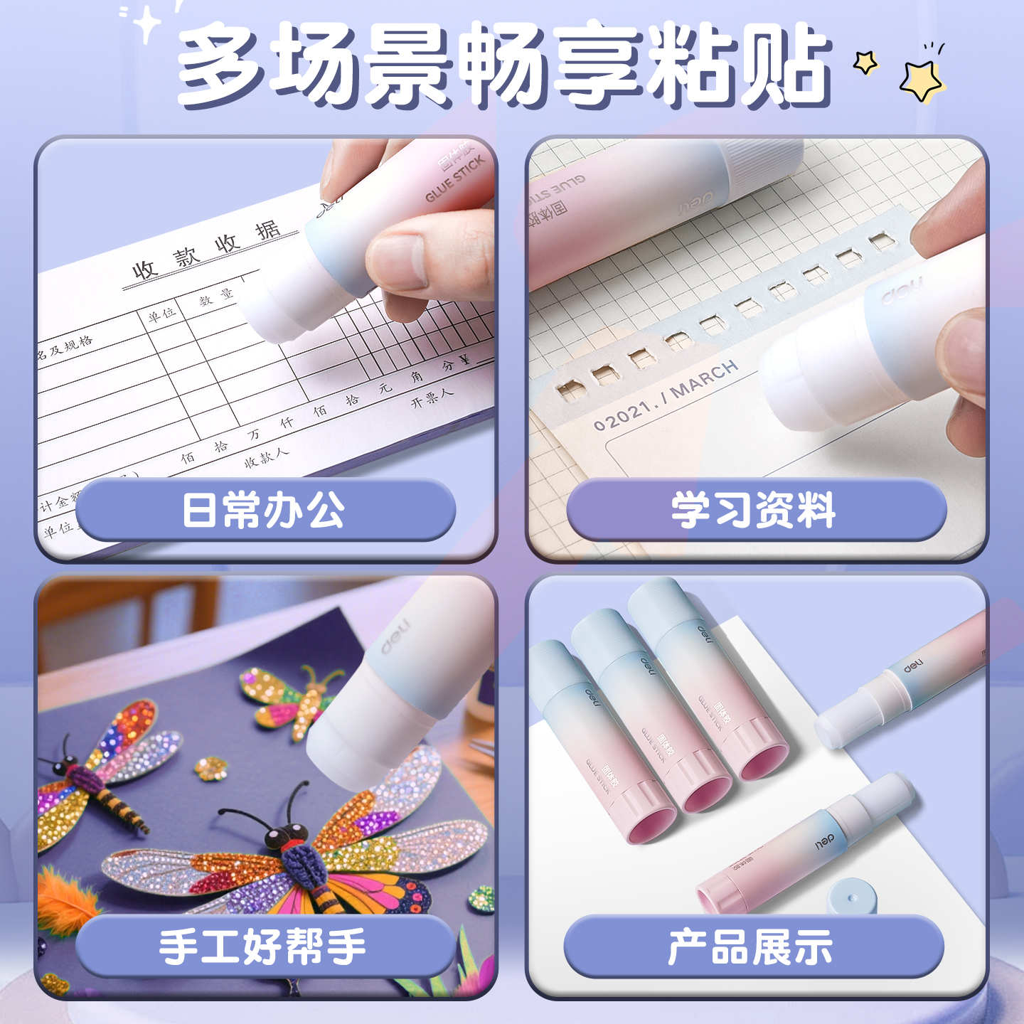 得力固体胶高粘度儿童无甲醛果冻固体胶水胶棒幼儿园手工强力固体胶大号8/15/20/36g办公财务学生胶棒整盒装