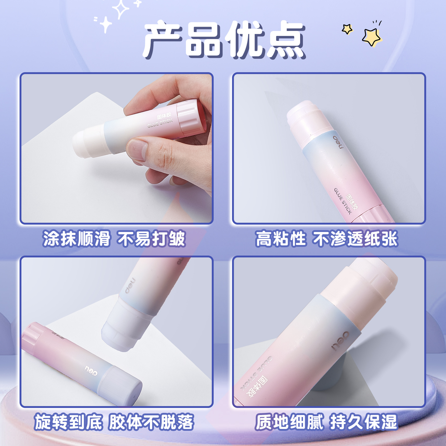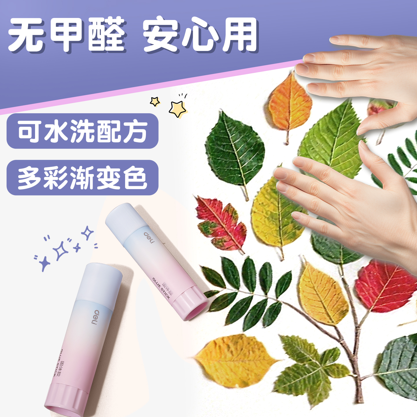 得力固体胶棒高粘度小号学生用可水洗儿童手工高颜值渐变色强力胶