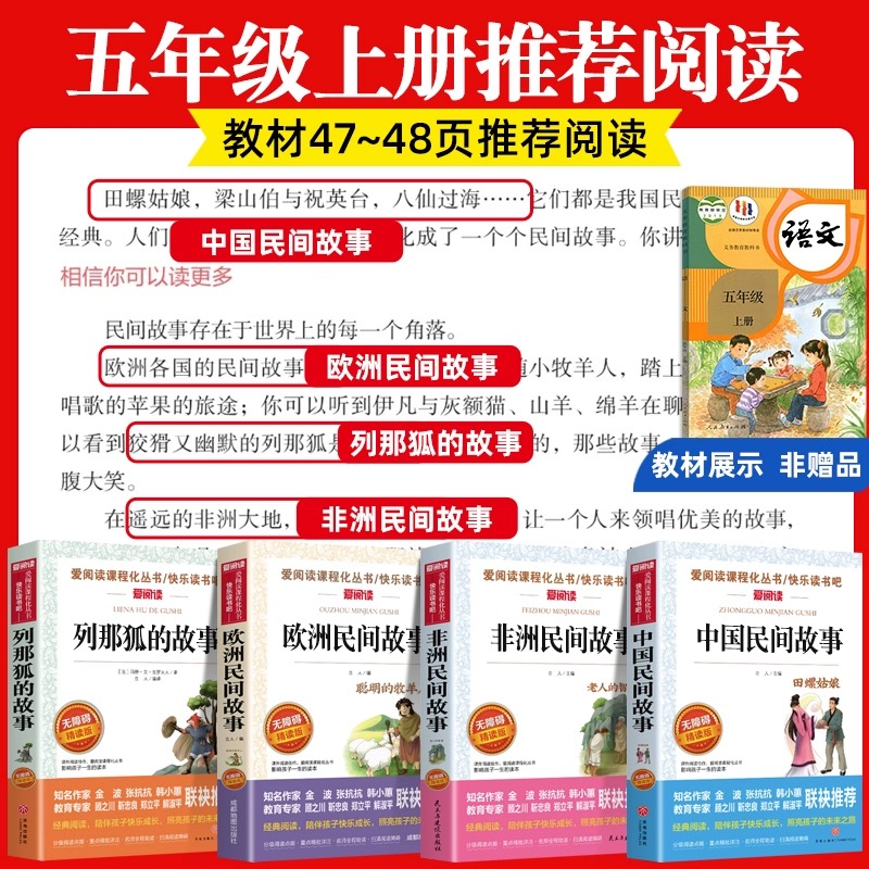 五年级上册快乐读书吧必读的课外书中国民间故事5上阅读书籍欧非洲列那狐的故事上下册书目小学生语文教材非人教版正版神话姑娘