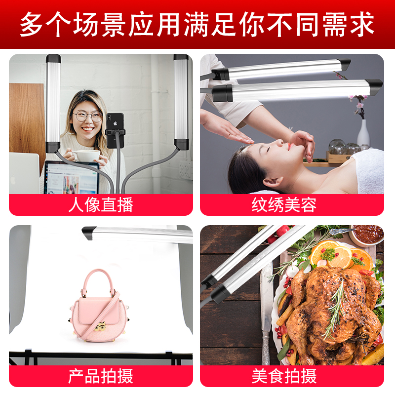 LED摄影灯主播直播双臂补光灯打光灯室内拍摄道具自拍拍照支架落地摄像灯网红直播间纹绣美容珠宝美食补光灯