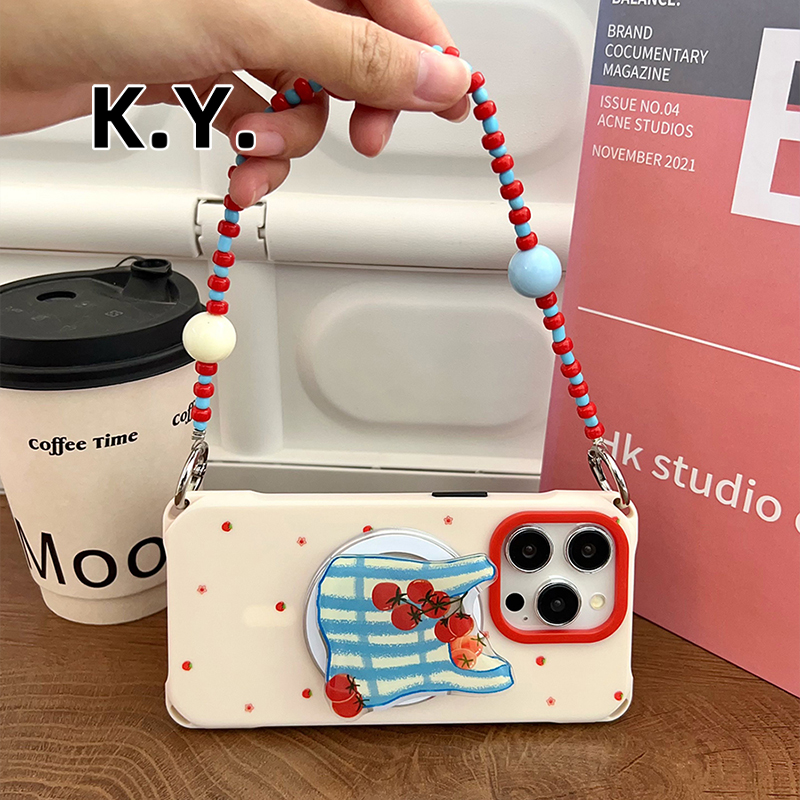 ins番茄袋子磁吸支架手机壳带挂绳适用于15/16PRO华为mate60/70手腕斜挎15ultra四角开孔vivo200防摔findx8
