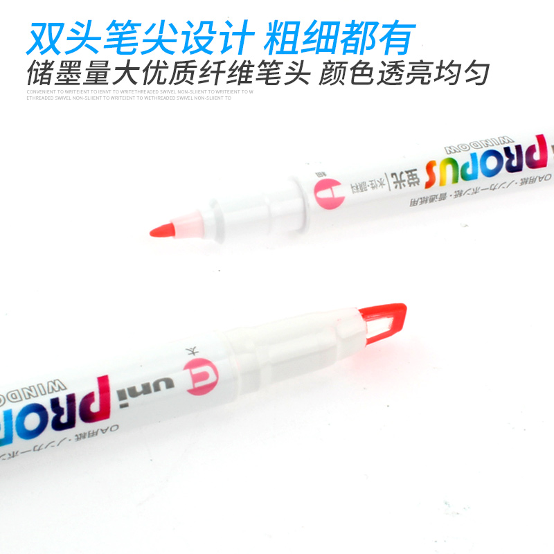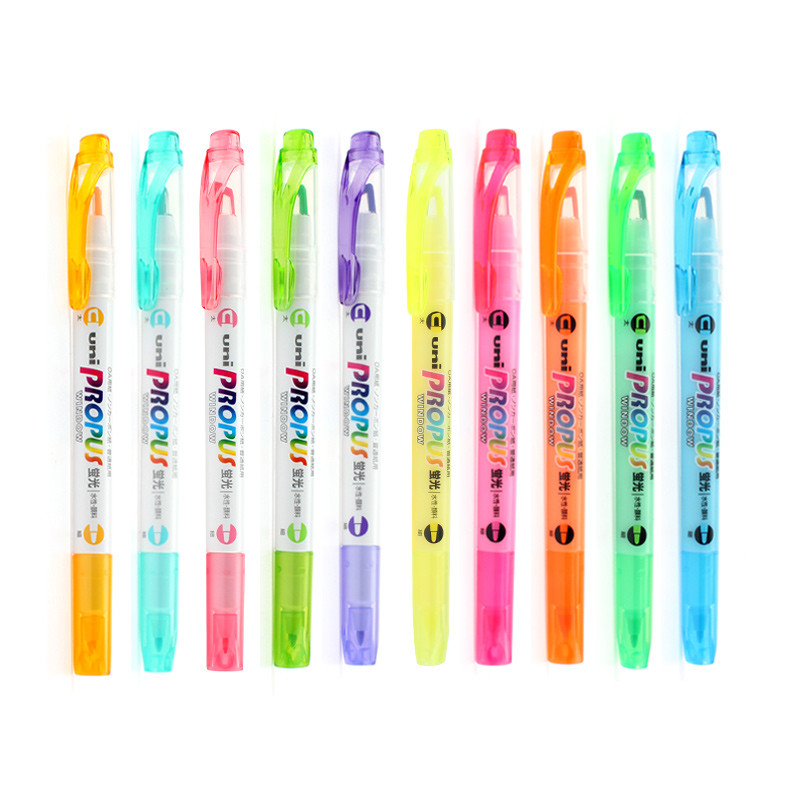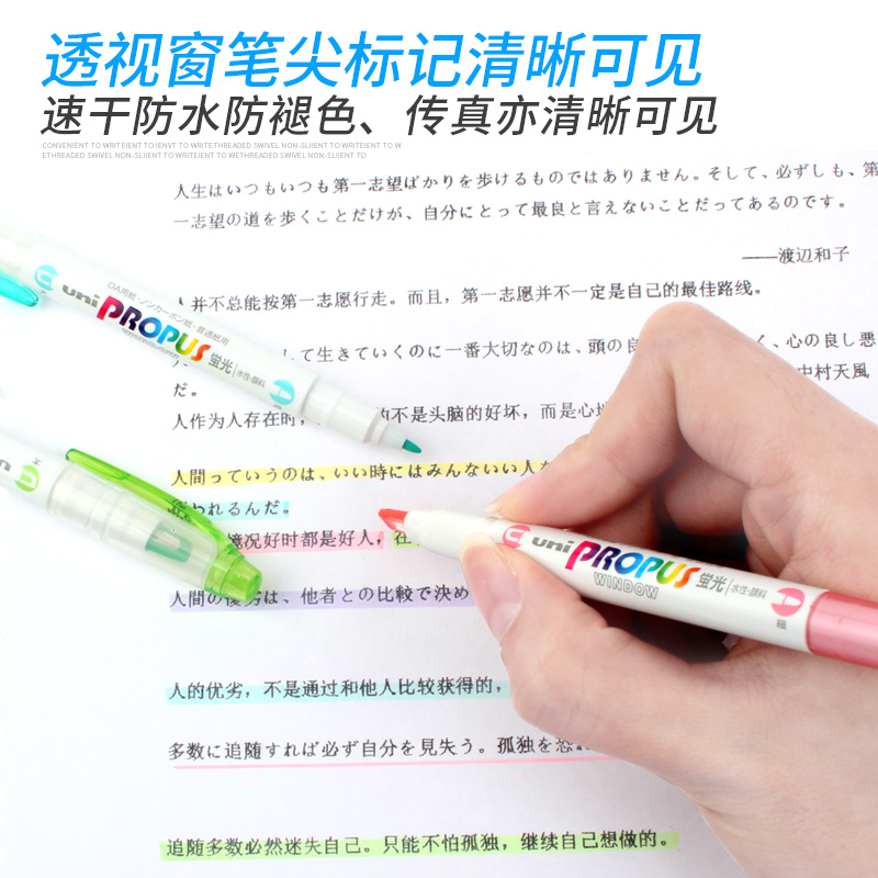 日本UNI三菱PUS-102T双头淡色荧光笔PROPUS透视荧光笔学生记号笔文具做笔记的彩色笔银光粗划重点小清新标记