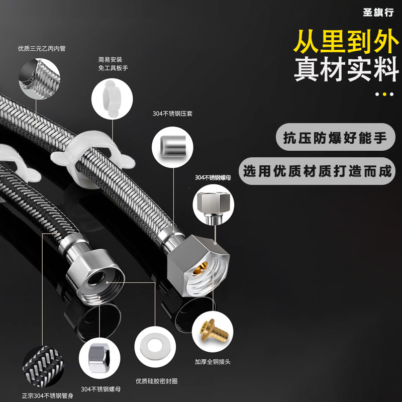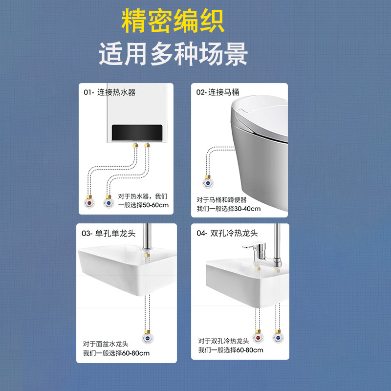 304不锈钢编织软管水管冷热4分进水马桶热水器高压防爆金属连接管