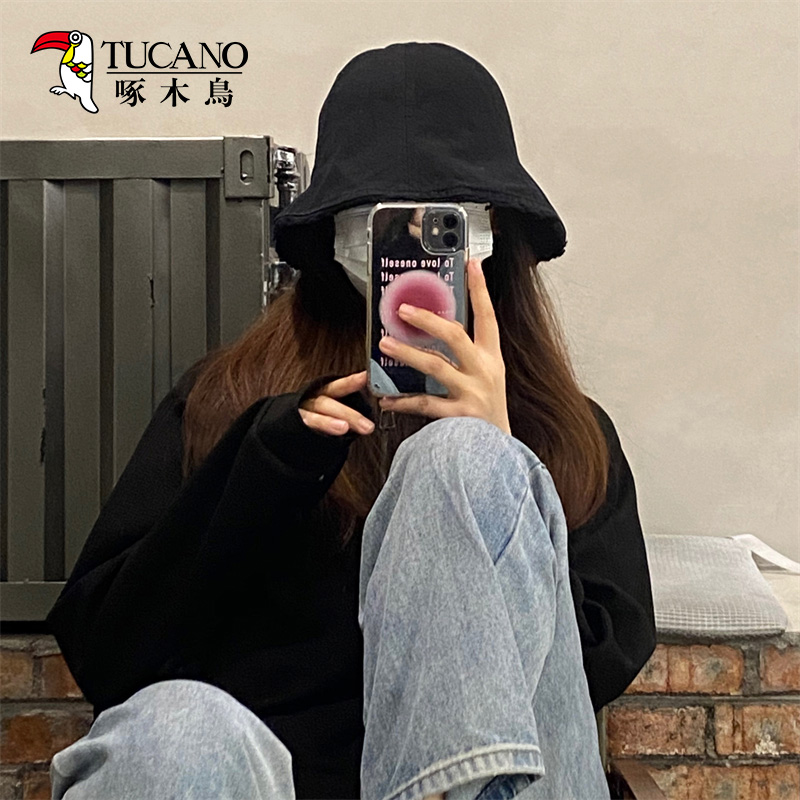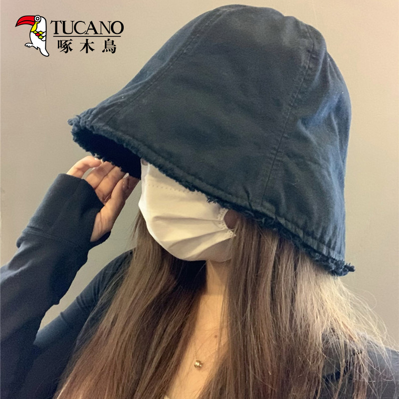 啄木鸟秋冬渔夫帽女2025新款纯色简约大头围显脸小水桶帽遮阳盆帽