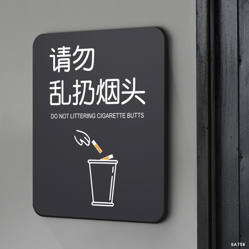 黑色压克力小便池禁止乱扔烟头垃圾提示牌楼道请保z持卫生清洁墙