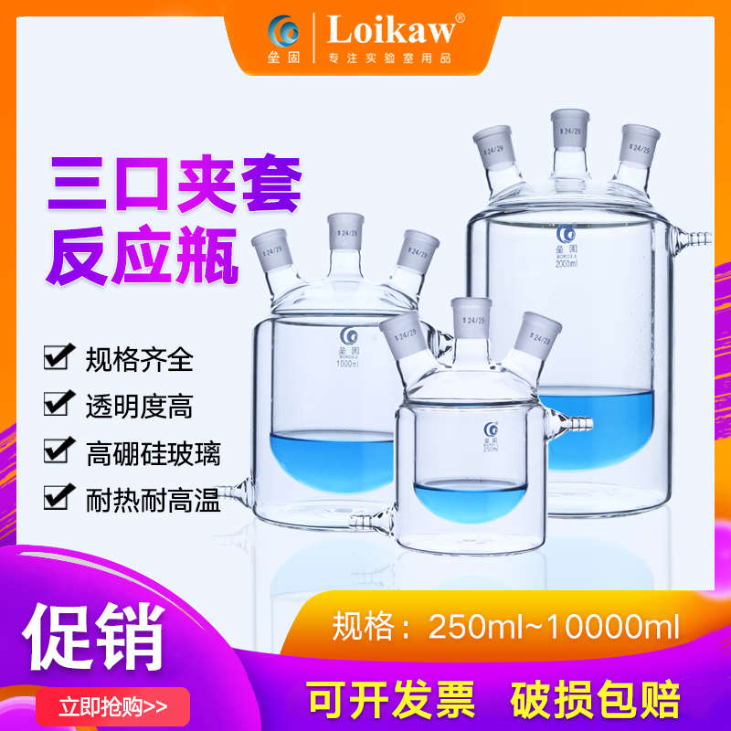 垒固单口a三口四口夹套反应瓶平底内圆外平三口双层反应烧瓶高硼