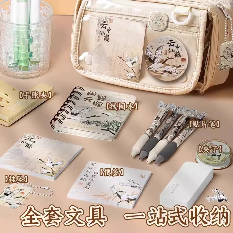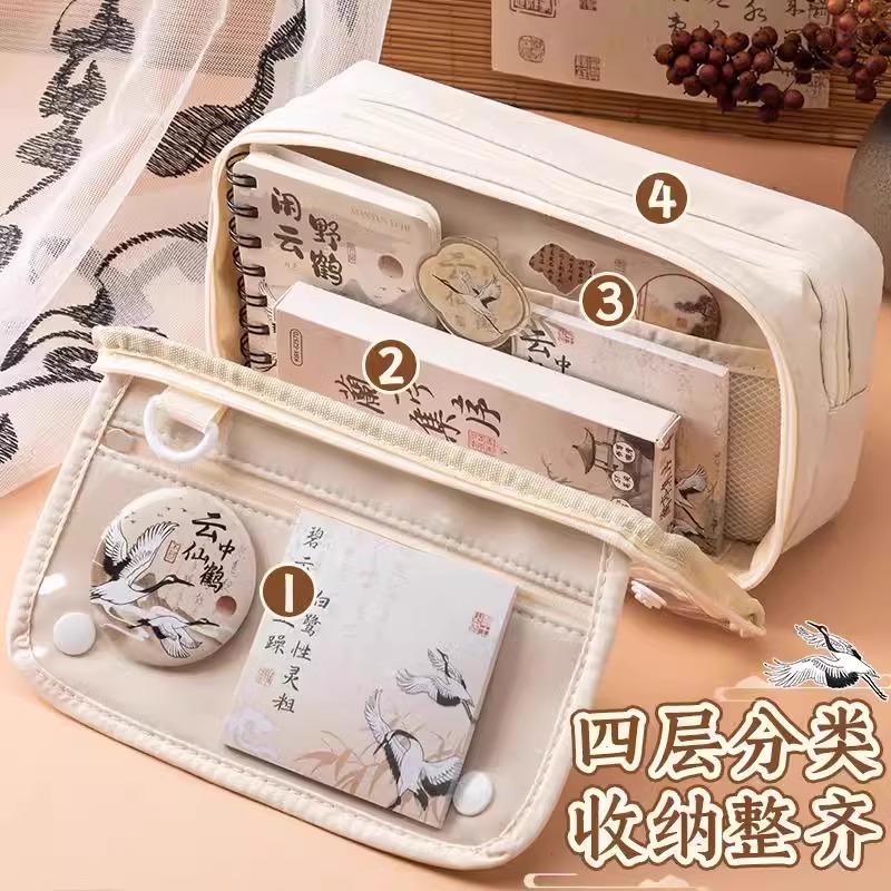 2024新款国风笔袋女生初中新中式文具盒套装高颜值九层大容量女孩男孩透明痛包文具袋大礼包小学生古风铅笔盒
