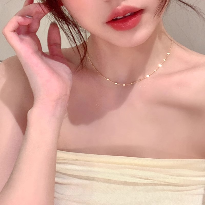 通体S925银波光闪片轻奢高级感简约锁骨链叠戴项链女气质颈链