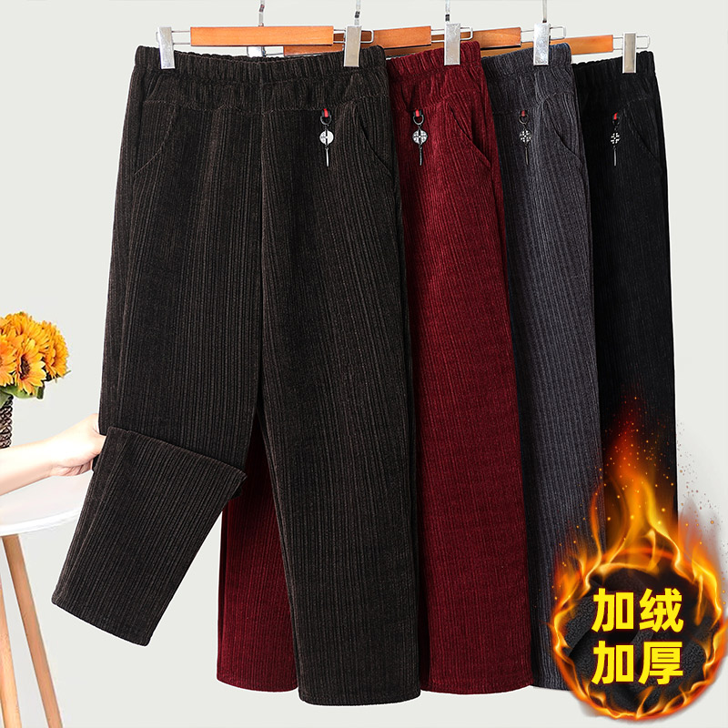 中老年人妈妈秋季裤子外穿灯芯绒老人秋冬休闲裤宽松老太太女裤