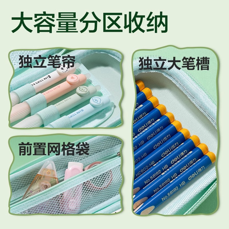 得力熊猫笔袋2025新款EVA立体铅笔盒女生男生绿文具收纳轻便小学生初中生大容量分层可爱卡通高颜值3D多功能