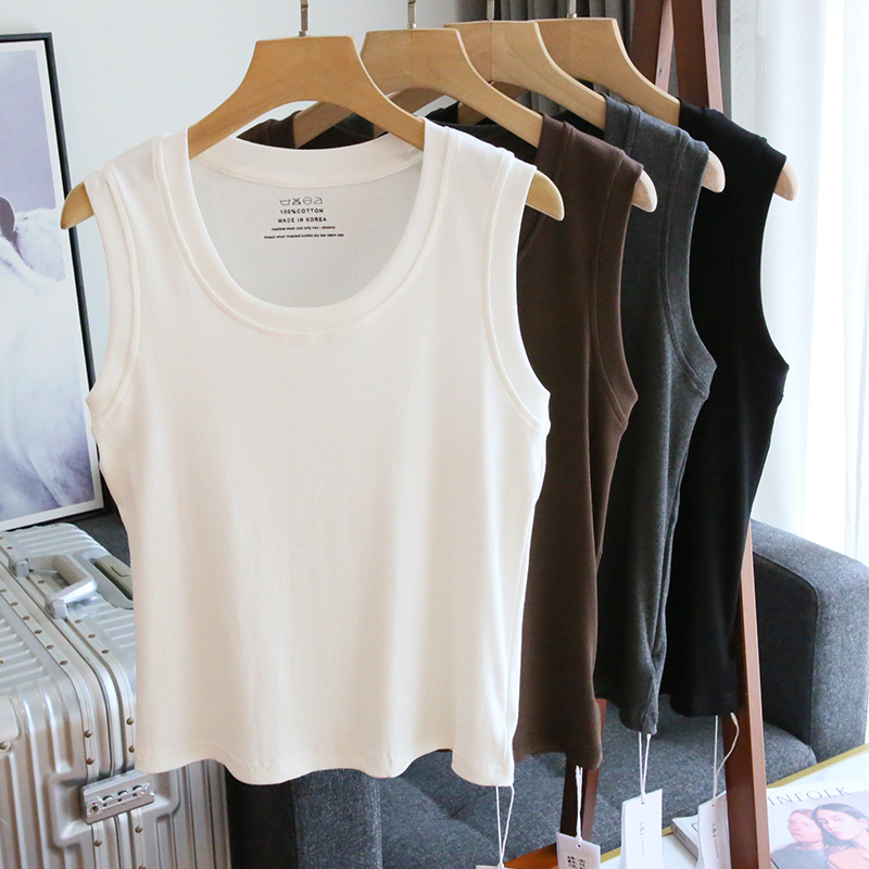 超模工字背心!大弹力纯棉圆领纯色内搭上衣女韩版外穿春夏秋吊带