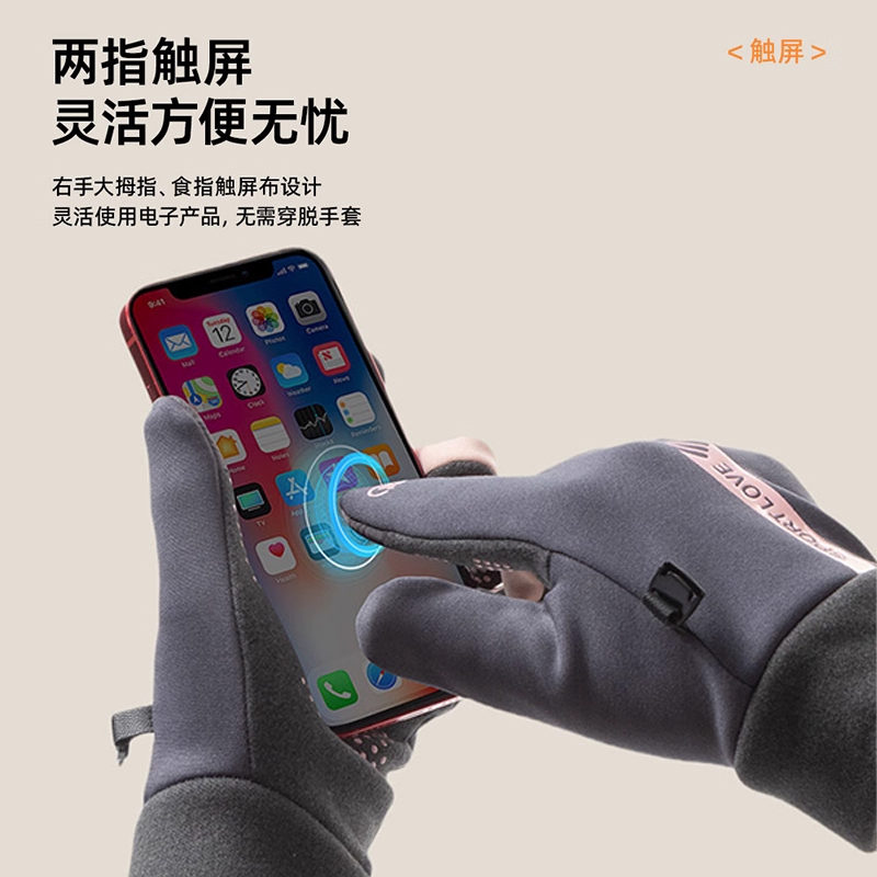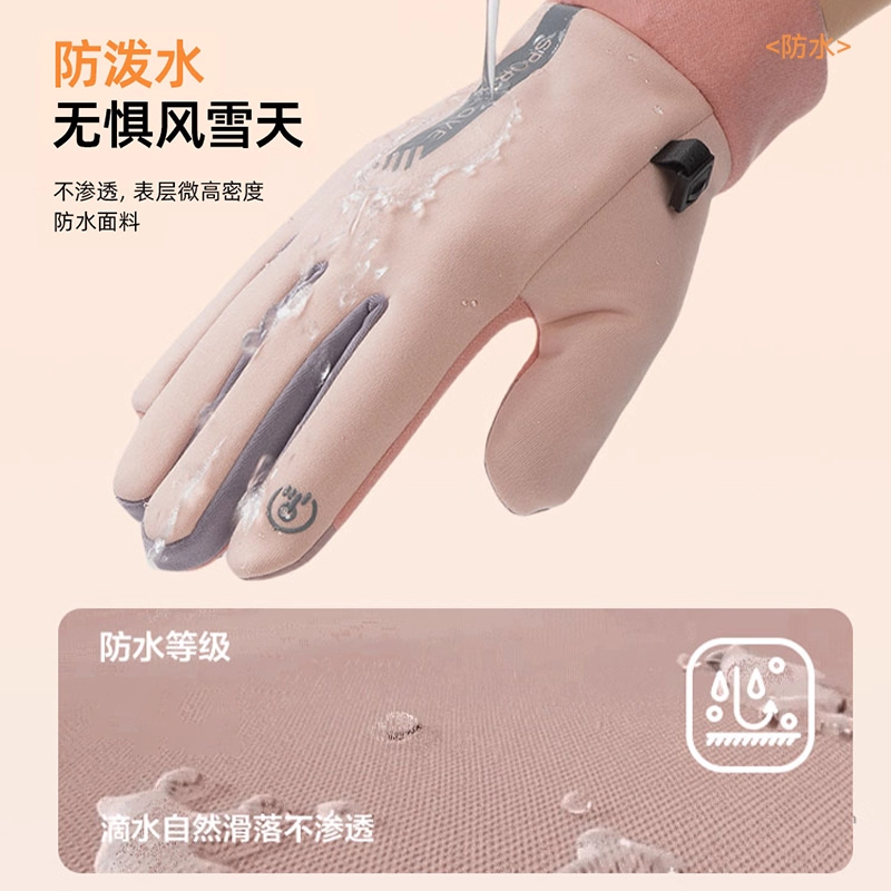 可触屏骑行手套女冬季防水男冬天防风保暖骑车加绒防寒电动车德绒