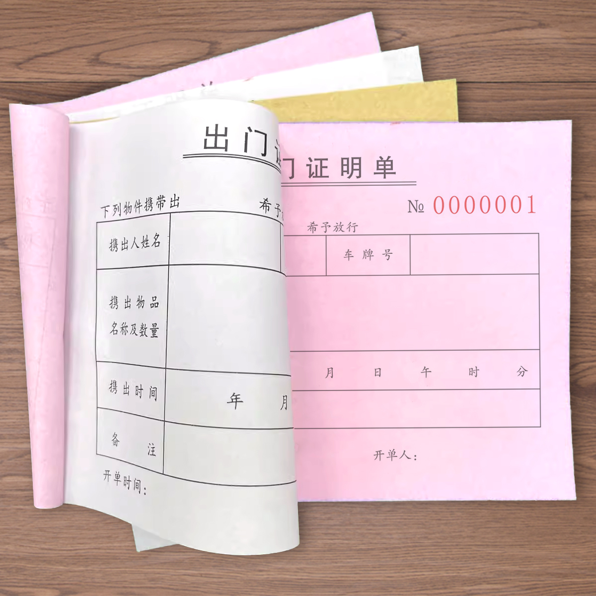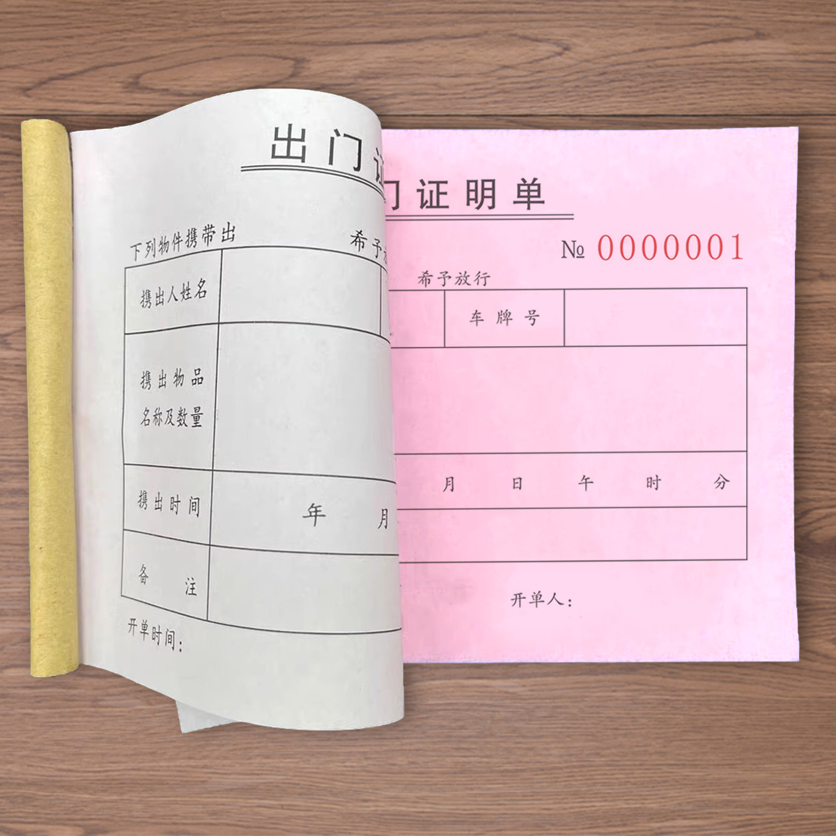 支持定制 5本包邮工厂门岗保安室通用出门证明单二联货物放行条出门访客证园区物业消费货物车辆停车放行条