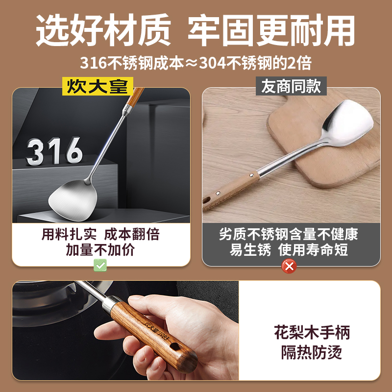 炊大皇锅铲316不锈钢加厚炒菜铲子漏勺汤勺家用厨具炒勺套装盛汤