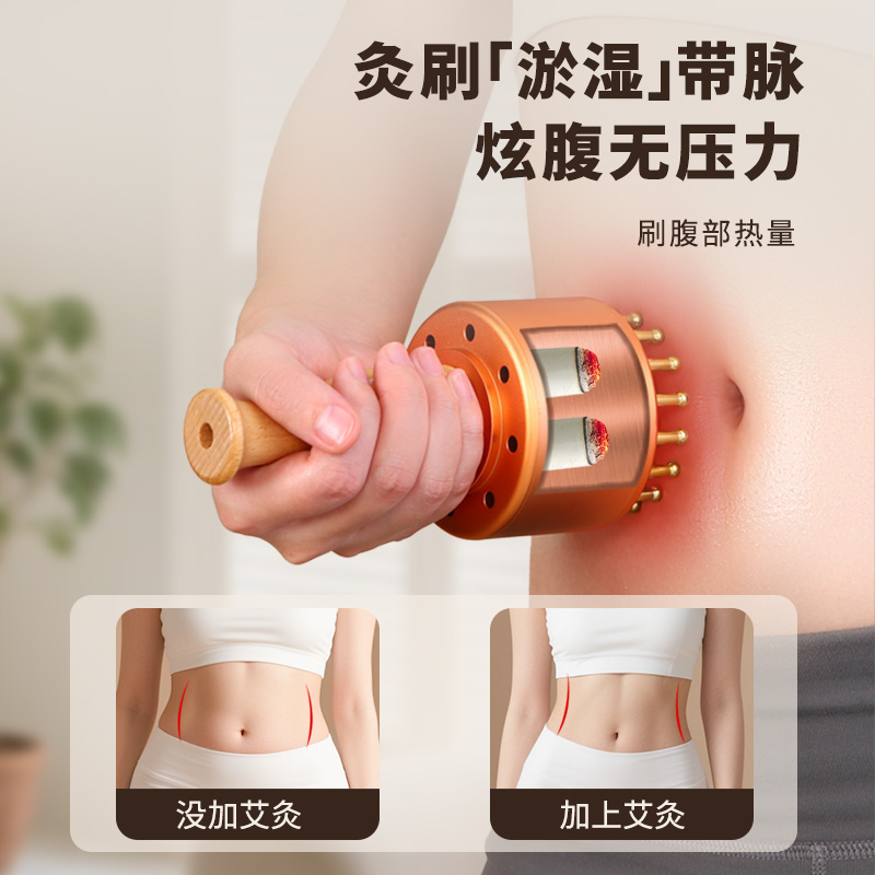 丰林纯黄铜艾灸经络刷燃脂肪揉腹肝胆推拿随身按摩艾灸刮痧一体罐