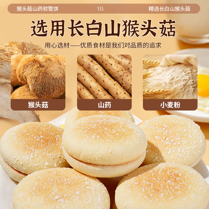 猴头菇山药软雪饼适合中老年人吃的健康零食养胃营养早餐食品糕点