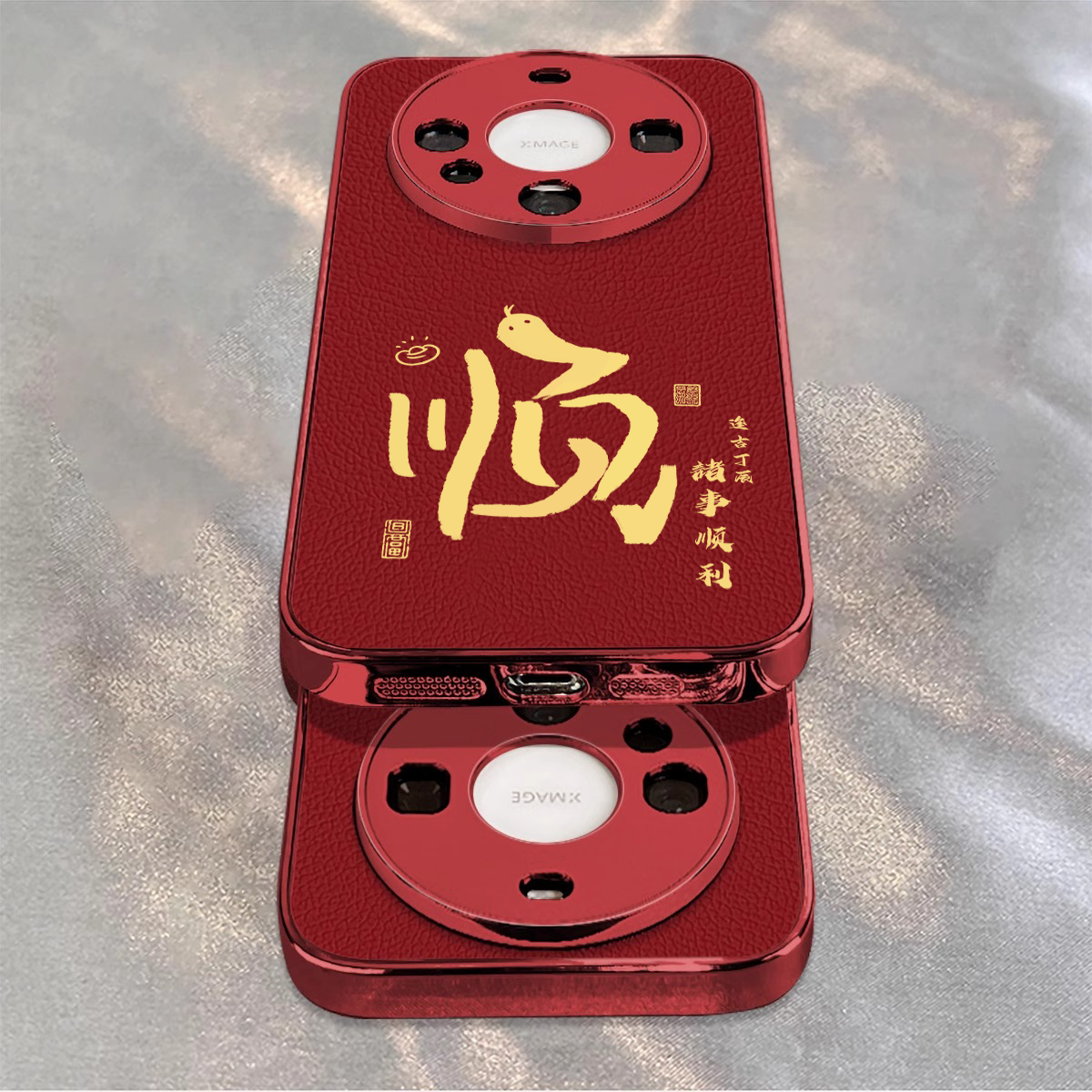 蛇来运转适用华为mate70pro手机壳复古mate60pro中国风新年款红色mate50电镀小羊皮高级感p60全包防摔m70保护