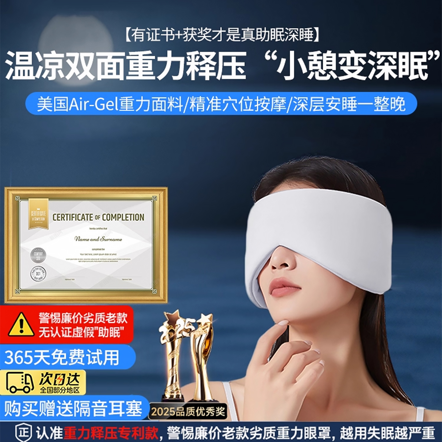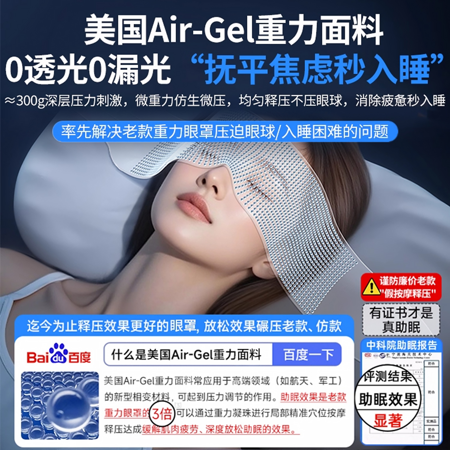 科技重力助眠深睡眼罩睡觉午睡专用遮光男女缓解疲劳微压睡眠神器