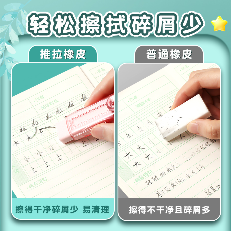 免费刻字晨光推拉橡皮擦小学生专用擦屑成条像皮一年级推动式象皮擦字不易留痕幼儿园儿童创意卡通可爱橡皮擦