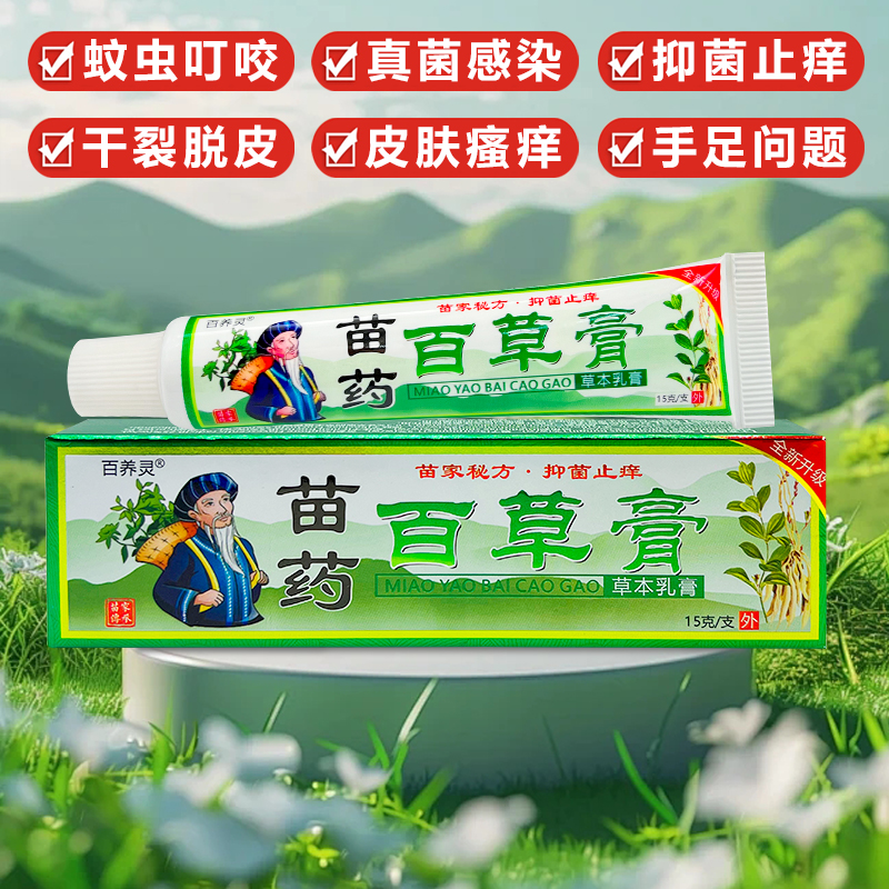 百养灵苗药百草膏皮肤瘙痒外用蚊虫叮咬真菌感染止痒草本抑菌乳膏