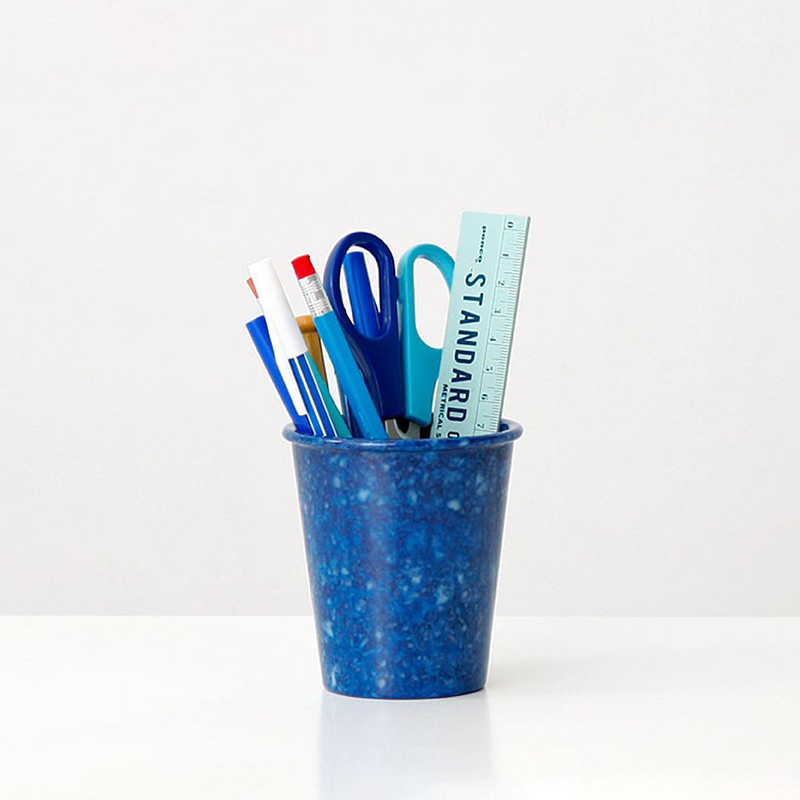 现货 日本HIGHTIDE MARBLED大理石纹 树脂桌面文具收纳笔筒 花盆