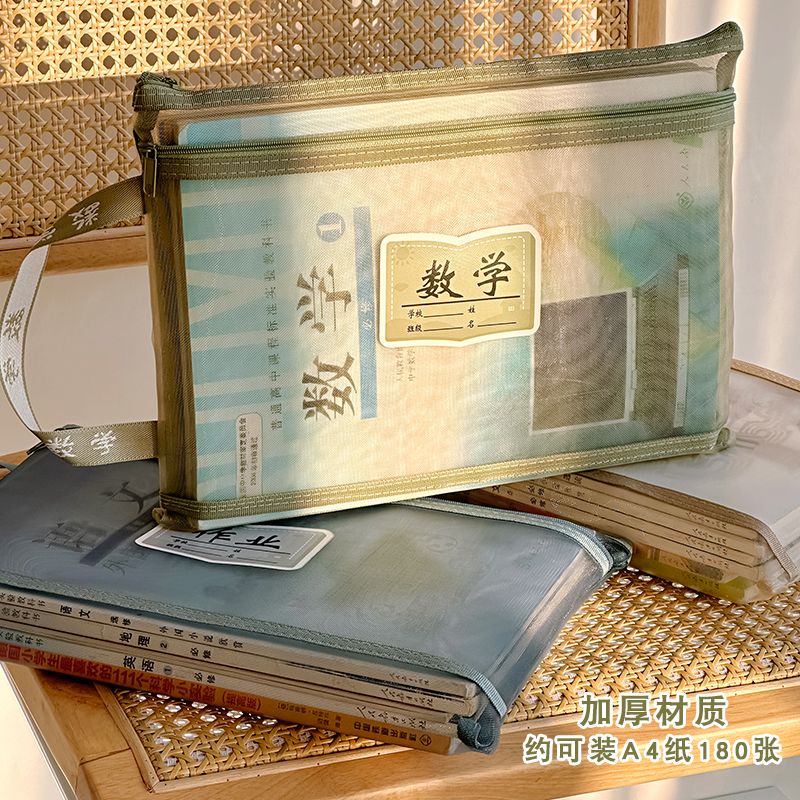 三年二班科目分类袋透明A4网纱文件袋拉链式大容量学生试卷收纳袋