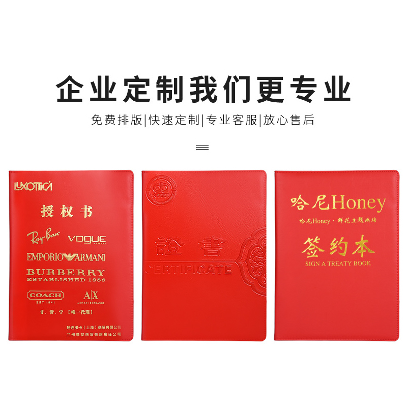高档签约本商务A3A4红色皮面皮质文件夹封面朗诵夹合同本外壳定制