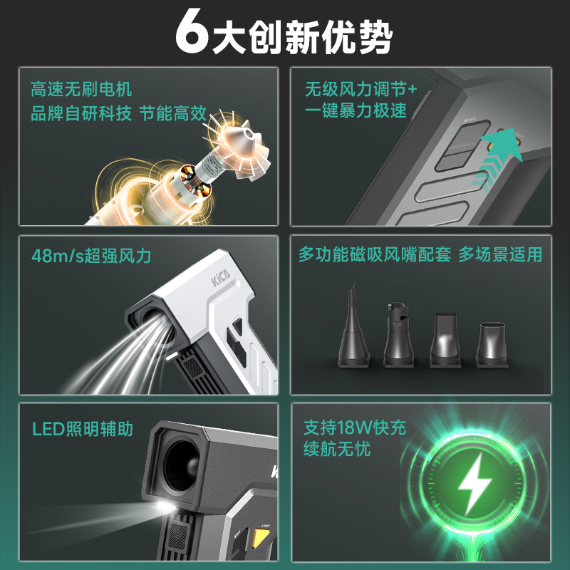 【新品上市】KICA涡轮扇飓风版暴力风扇多功能涡轮风扇户外助燃强力吹尘吹雪机无线手持强力风扇摄影造影神器