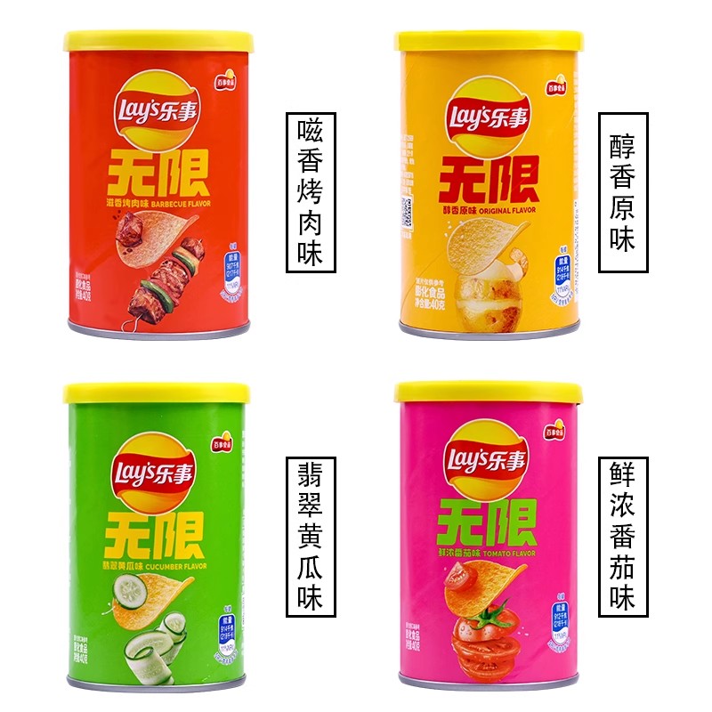 乐事无限薯片罐装40g原味黄瓜烧烤膨化儿童追剧办公休闲零食批发