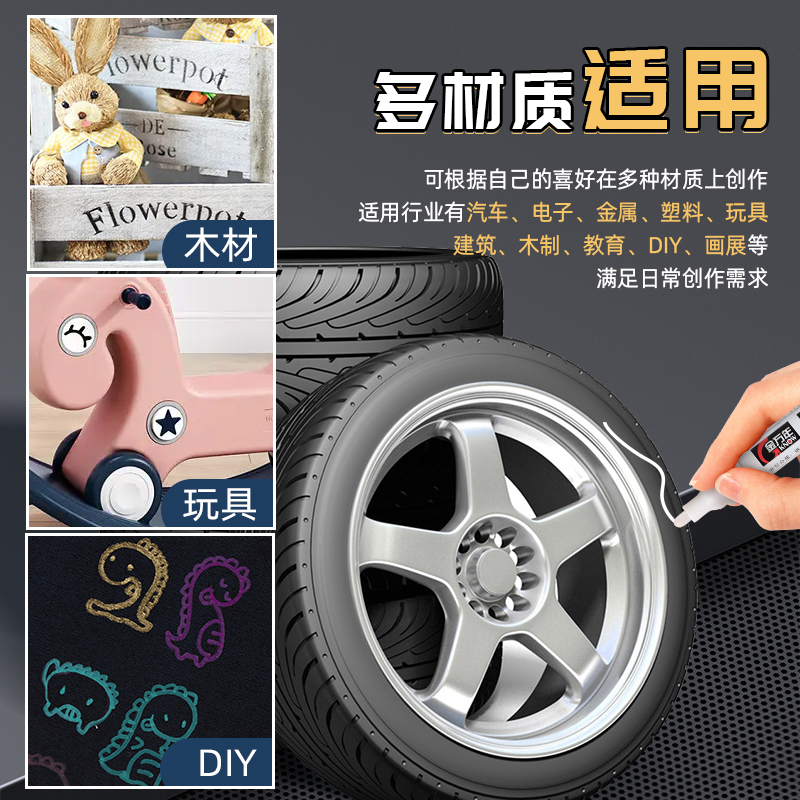 白色油漆笔防水防油不掉色记号笔白色补漆笔油性汽车描轮胎笔工地专用黑色工业速干白漆大头笔涂鸦描边标记笔
