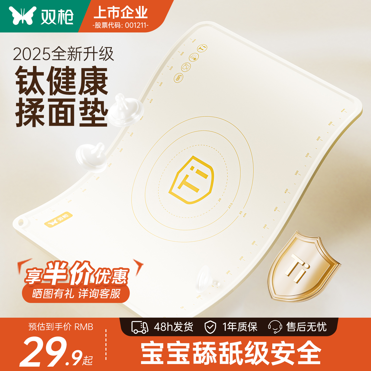 双枪钛揉面垫硅胶加厚擀面垫和面家用面板烘焙垫食品接触级做馒头