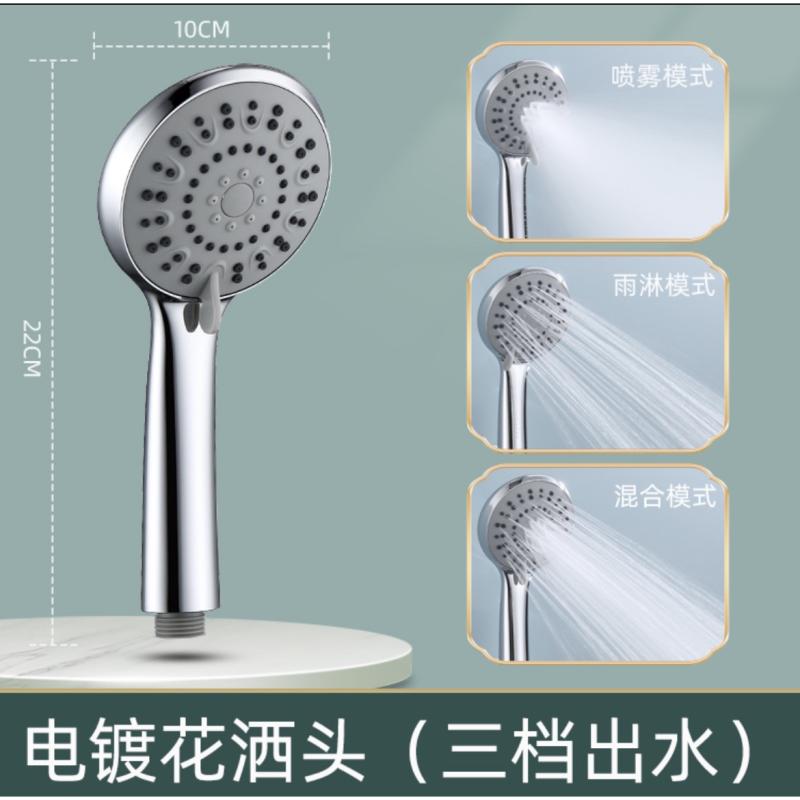 不增压花洒喷头电镀三档出水硅胶孔淋浴头莲蓬头防堵反冲洗软管