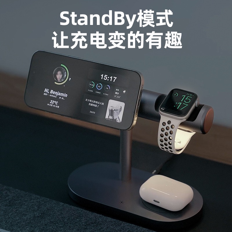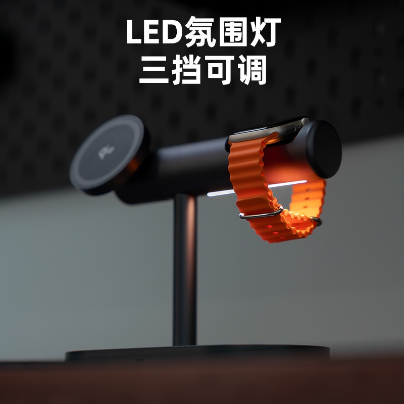 KEJIU科就桌面磁吸多功能四合一15w快速无线充电支架夜灯Qi2简约
